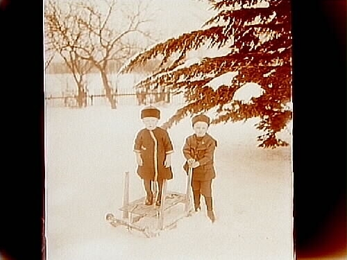 Två småpojkar och en kälke.