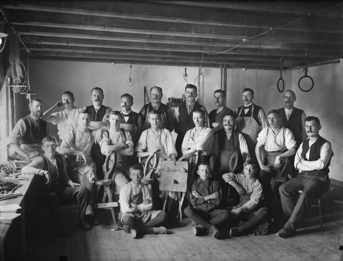 Ad. Larssons Skofabrik, interiör, 20 sadelmakare.