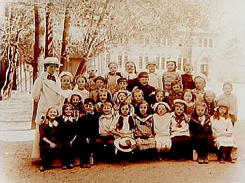 Trädgårdsskolan, 31 skolbarn och fröken.
