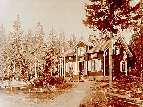 En och en halvvånings trävilla med frontespis.