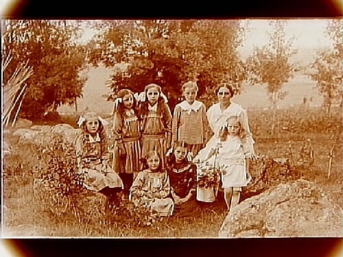 Söndagsskola, 7 flickor i söndagsskolan och lärare.