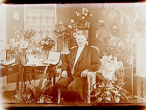 Titel: Rumsinteriör, en man. Fabrikör Anders Larsson på 60 årsdagen.