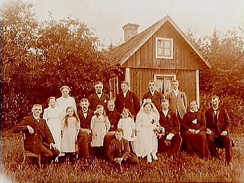 Bröllop, brudpar och bröllopsgäster.