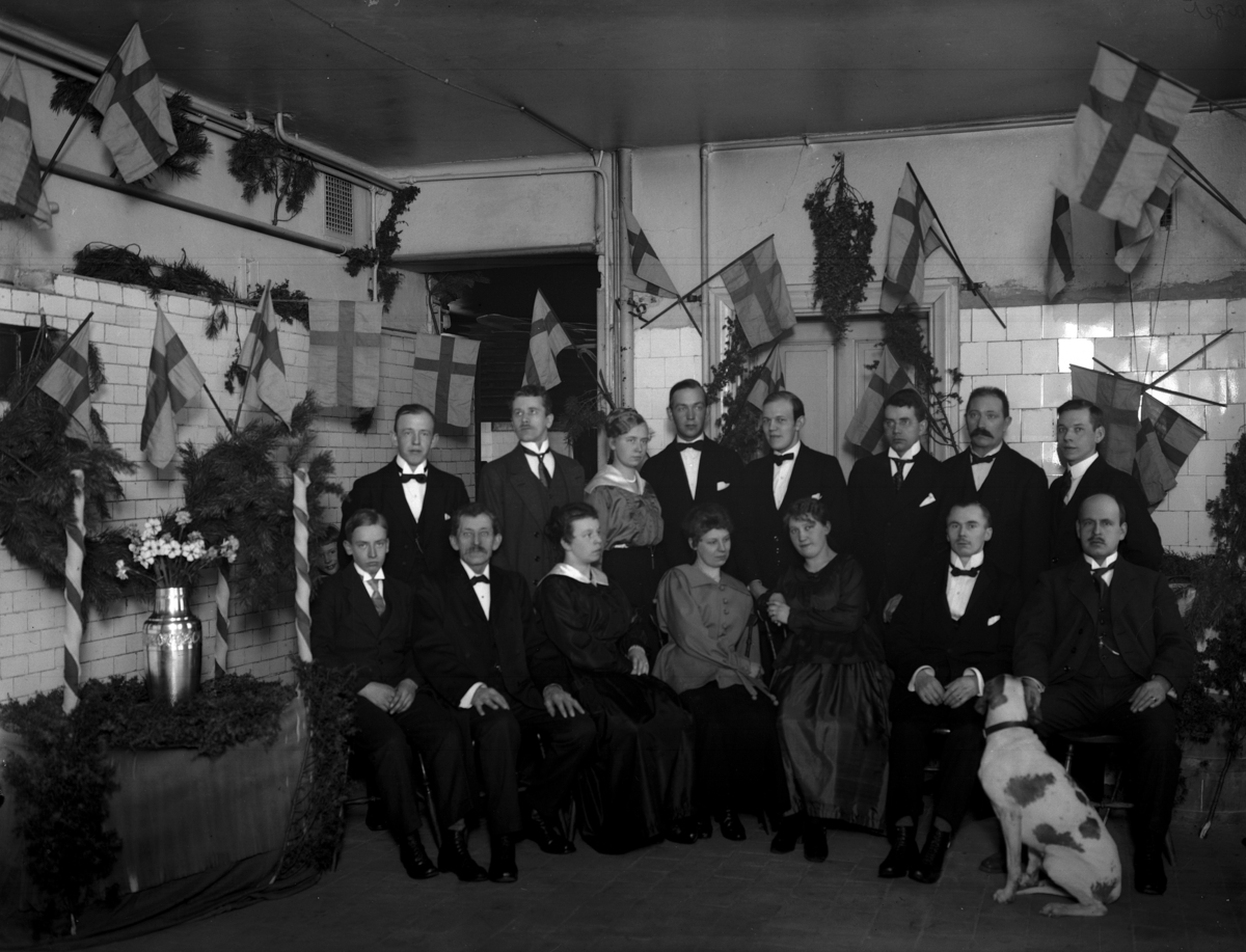 Bageri & Konditori, interiör, 15 personer och en hund.