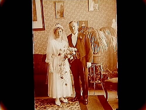 Titel: Rumsinteriör. Brudpar. Charles Eriksson