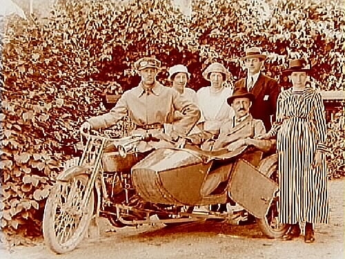 Motorcykel med sidovagn, 6 personer.