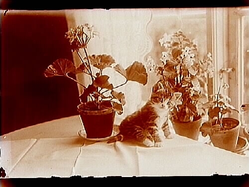 Kattunge bland krukväxter.
