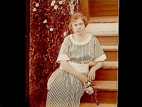 En kvinna på trappan.