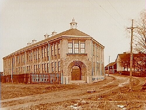 Olssons & Melins Skofabrik, tvåvånings vinkelbyggt fabriksbyggnad i tegel.
