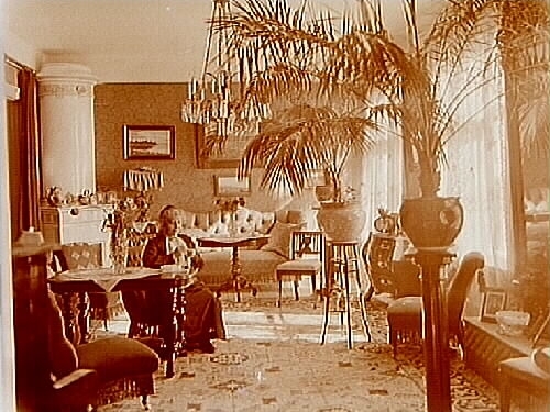 Titel: Rumsinteriör, en kvinna. Fru Tidholm