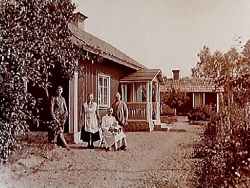 Envånings parstuga med förstubro, envånings enkelstuga.