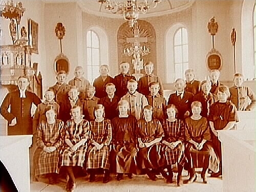 Konfirmander, 8 flickor, 16 pojkar och prästen.