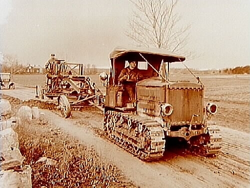 Brandtraktor och väghyvel. T-Ford i bakgrunden.