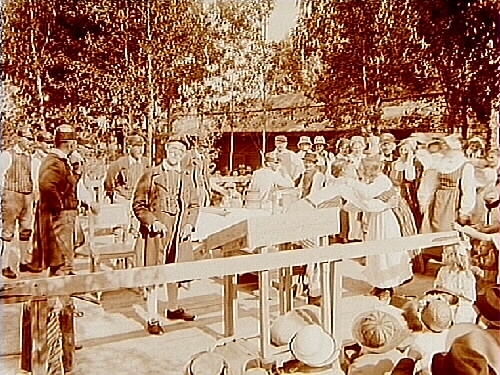 Krestningakalaset (dopkalas), 20 personer i folkdräkter.