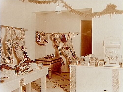 Arvid Gullbergs Charkuteriaffär & Korvfabrik, interiör.