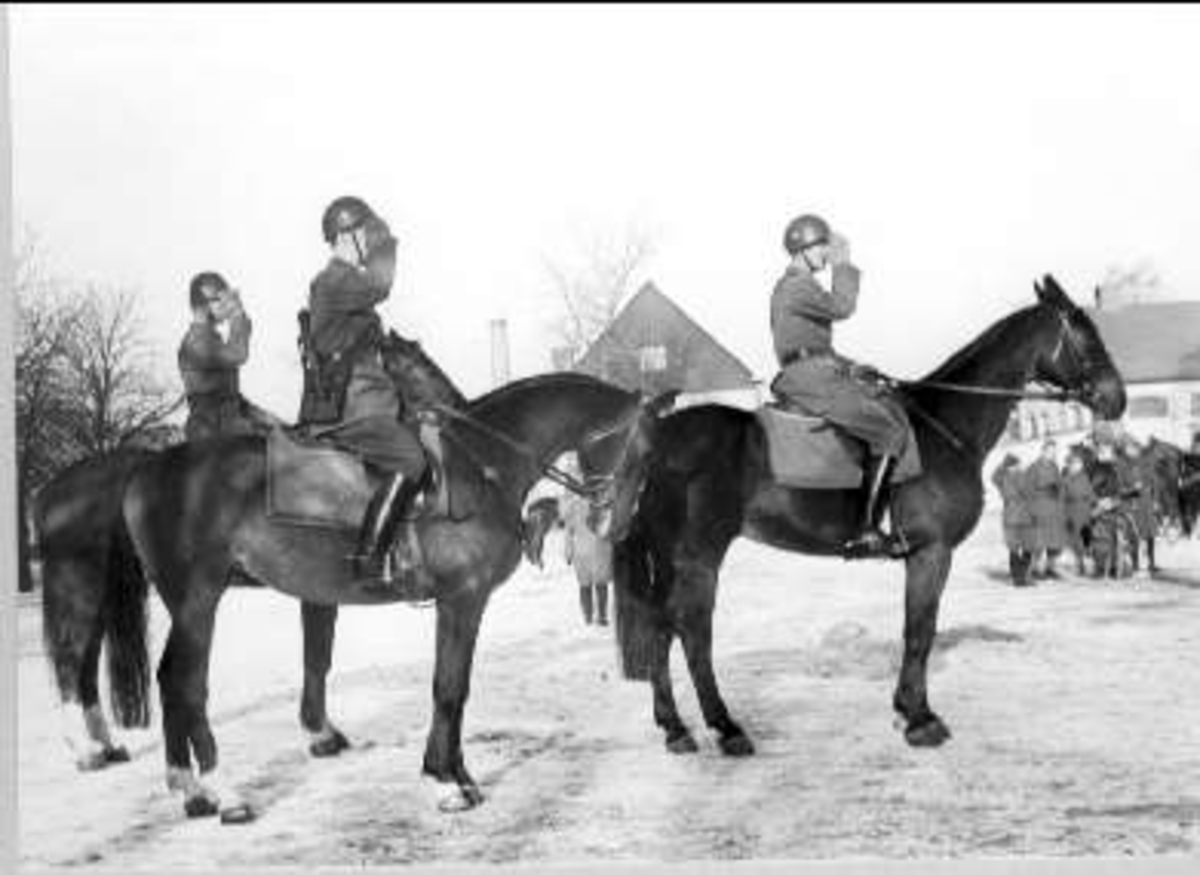 Ryttmästare Stig Aaby-Ericsson lämnar av till sekundchefen: "Överste, Örebro skvadron, enligt order".