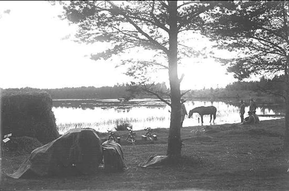 En stämningsbild från Tärnet, Hanken, Karlsborg. "Patient" med hovinflammation. Hästen med något ansträngda hovar och ben "kyls ned" efter dagens övningar.