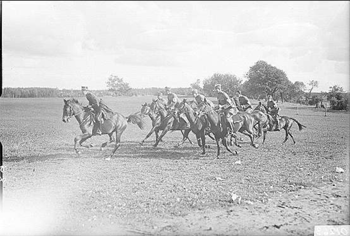Regementskapplöpningar på övningsfältet söder K 3 kasern. Jaktlopp med master löjtn. G. Burman som ännu ej "släppt" fältet för fri ridning.