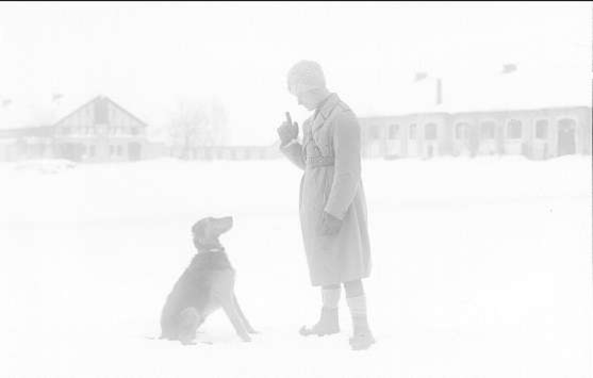 Titel: Löjtnant Stig Facht dresserar sin hund.