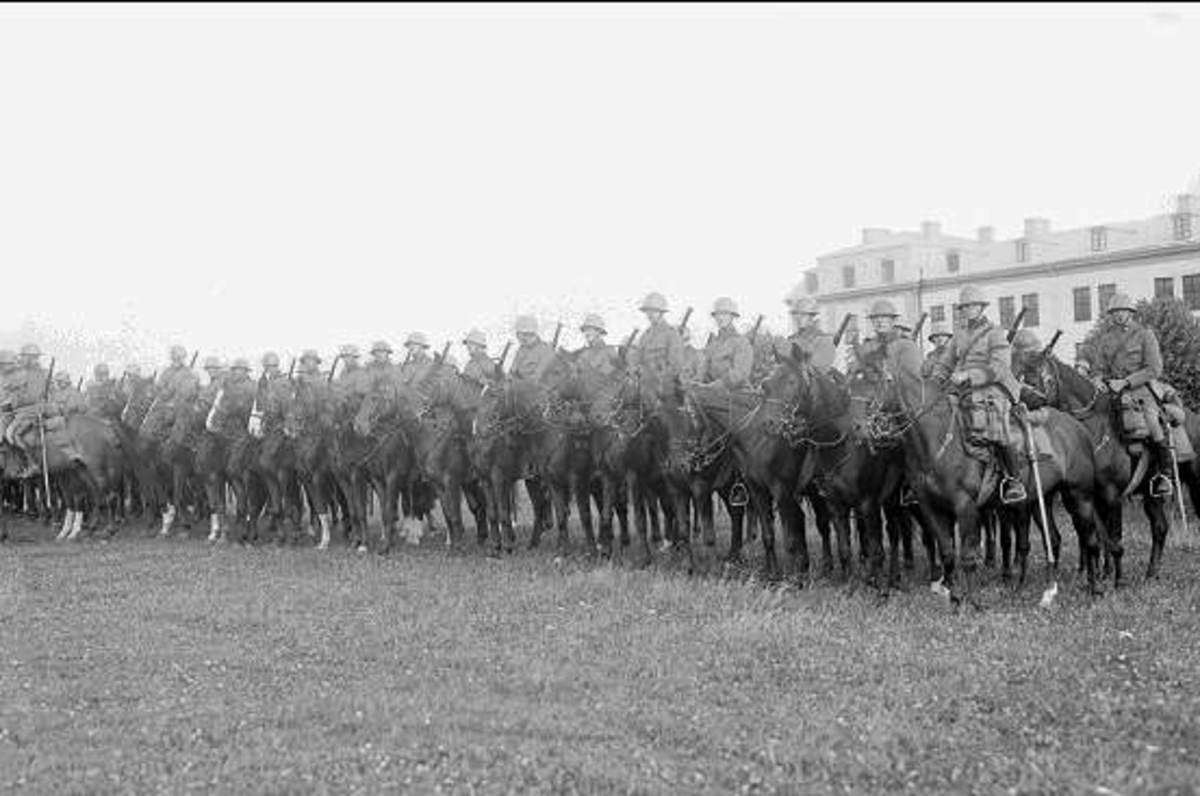 2.skvadron till häst uppställt på fältet söder om stallarna för avlämning före sommarmarschens början 1930.