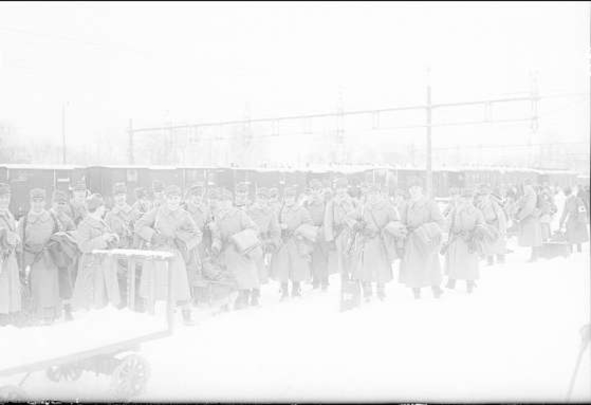 Ilastning på Skövde järnvägsstation för avtransport till vinterutbildning.