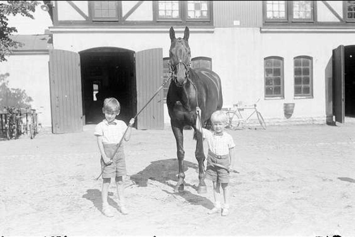 Löjtn. Harald Strömfelts två pojkar med en av tävlingshästarna som deltog i olympiaden i BERLIN 1936. Mackintosh * * 1917-1936 deltog i fälttävlan. Corso 1918-1937 deltog i prishoppning.