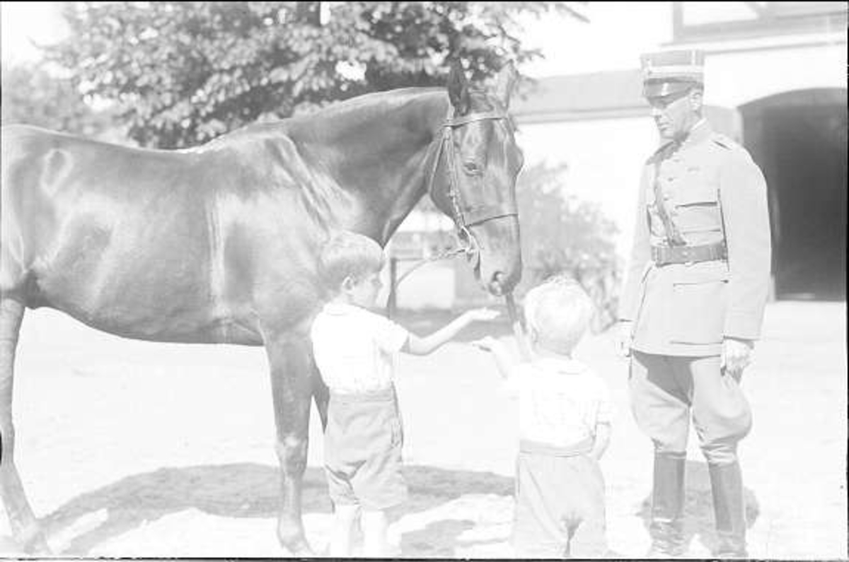 Löjtn. Harald Strömfelts två pojkar med en av tävlingshästarna som deltog i olympiaden i Berlin 1936. Mackintosh * * 1917-1936 deltog i fälttävlan. Corso 1918-1937 deltog i prishoppning.