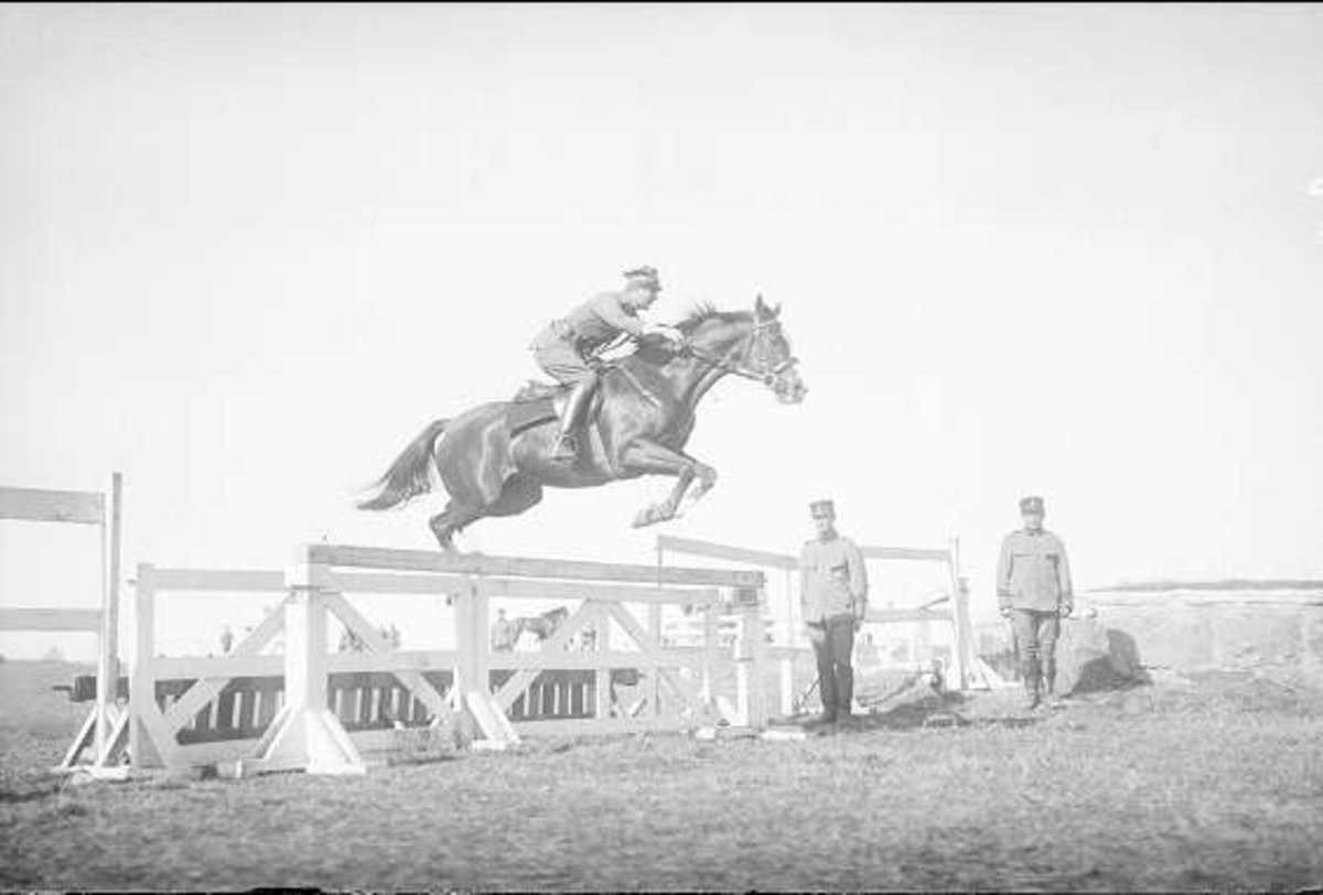 LHOS vårtävlingar i prishoppning 1933. Tävlingshästen Gwydir importerat engelskt fullblod.