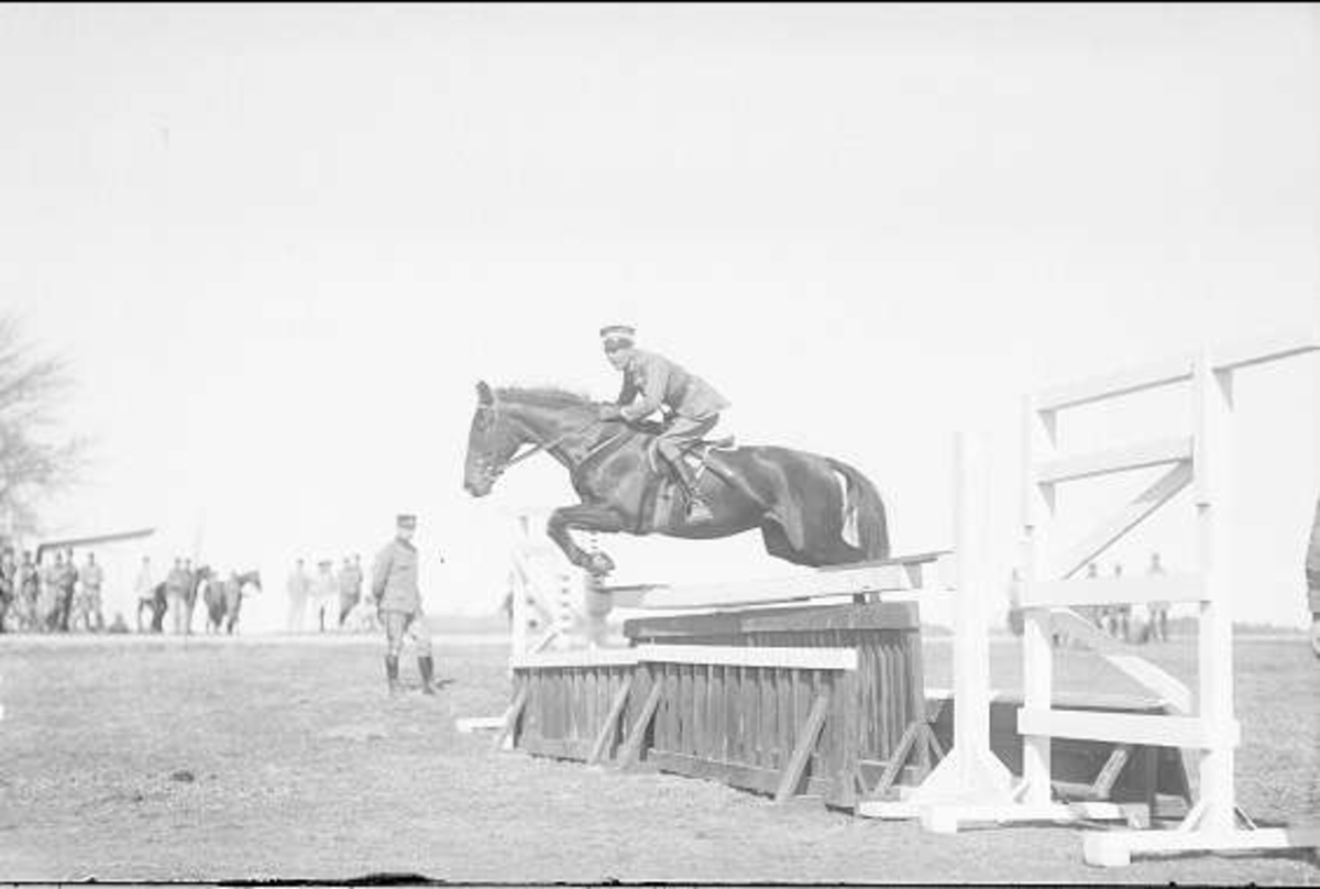 LHOS vårtävlingar i prishoppning 1933. Tävlingshästen Drot E Florian - Rustibuss, Maximum - Falcone.