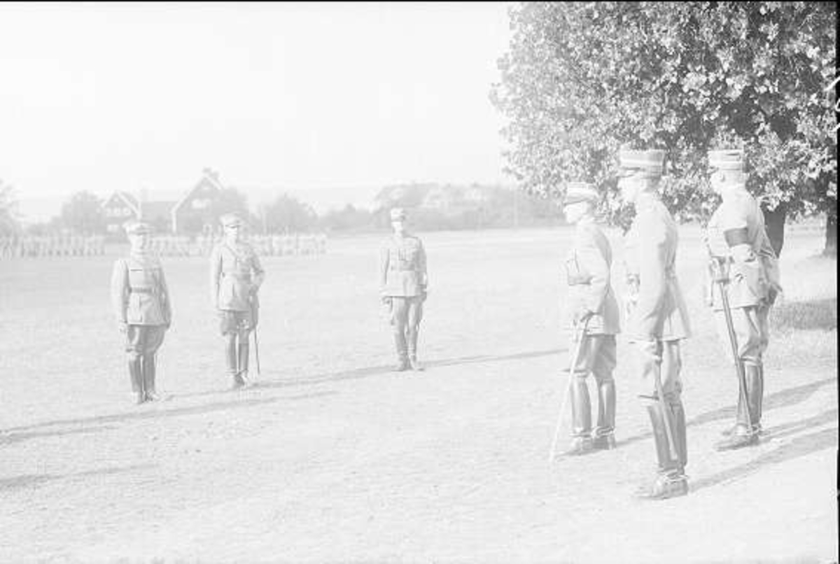 Sekundchefen - med flera officerare vid björkdungen norr förvaltarbostaden.