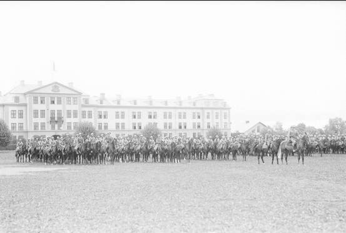 Kavalleriinspektören generalmajor Reinhold von Rosen tar avsked av regementet i sept. 1930. På bilden 2. skv. med chef ryttm. Carl-Axel Torén, adjutant fanjunkare John Kvarforth.
