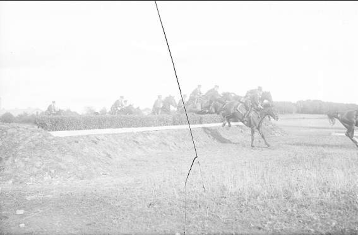 Jaktlopp för underbefäl. Fältet rider an mot jordvallen vid vakten I 9 (senare P 4).