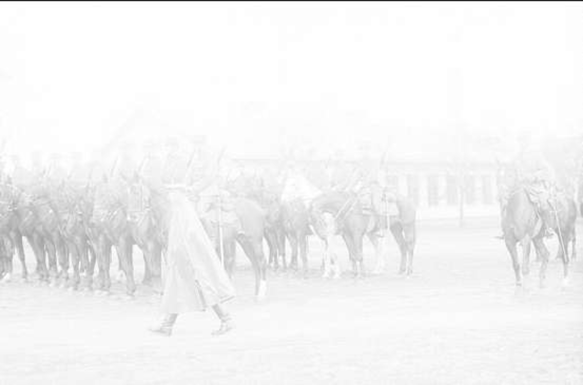 Aspirantskolan uppställd på kaserngården söder stallet för avlämning till överstelöjtn. Henry Peyron. I bakgrunden manskapsmatsalen.