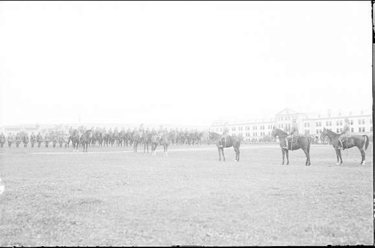 Kavalleriinspektör general Reinhold von Rosens slutinspektion och avsked av regementet. Här framför regementets front på fältet söder kasern.