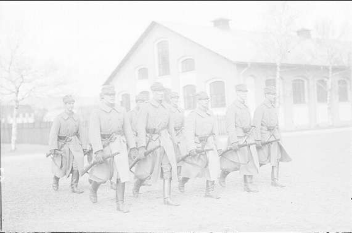 Utbildning, exercis på planen sydöst ridhuset. Enhetlig klädsel m/23.