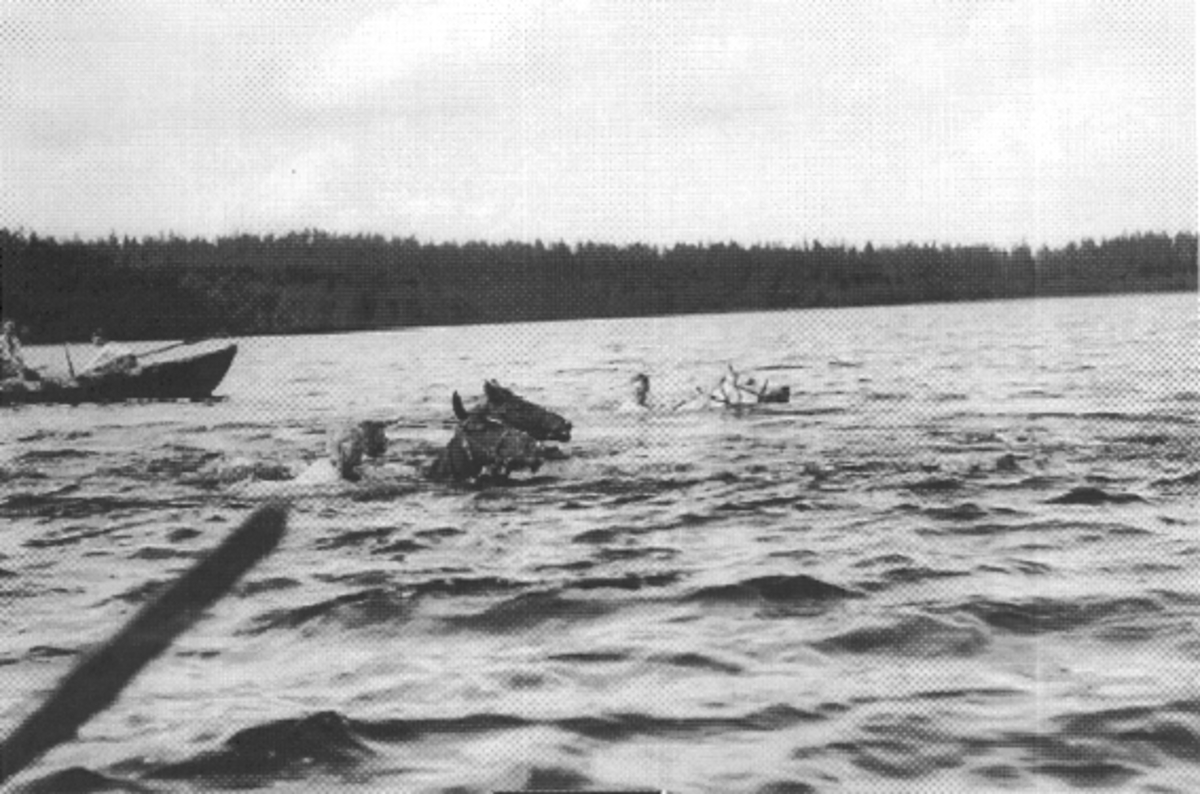 K3. Simning med häst - troligen i sjön Stråken vid Margreteholm.