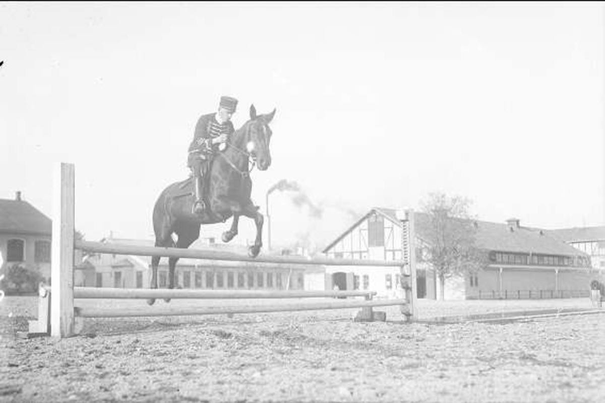 Träningshoppning på kaserngården söder skvadronsstallarna.