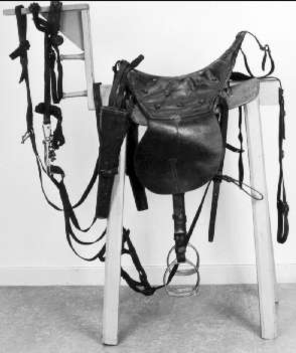 AM 2552. Sadelmundering m/1839 stångbetsel och bridongbetsel m/1839 för husarreg.