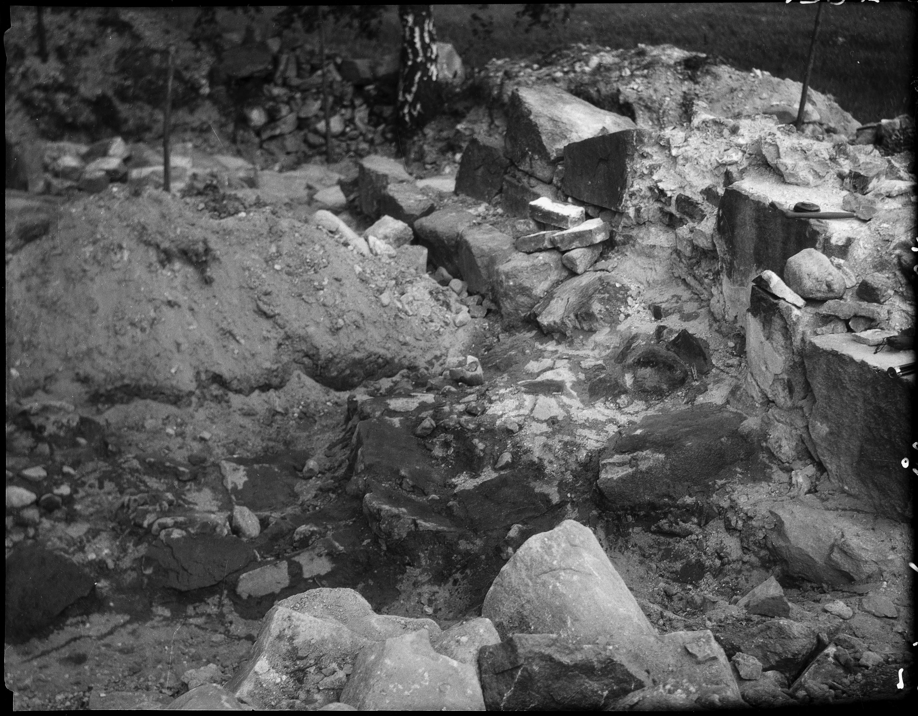 Kyrkoruinen, sockelstenarna utefter södra kormuren.