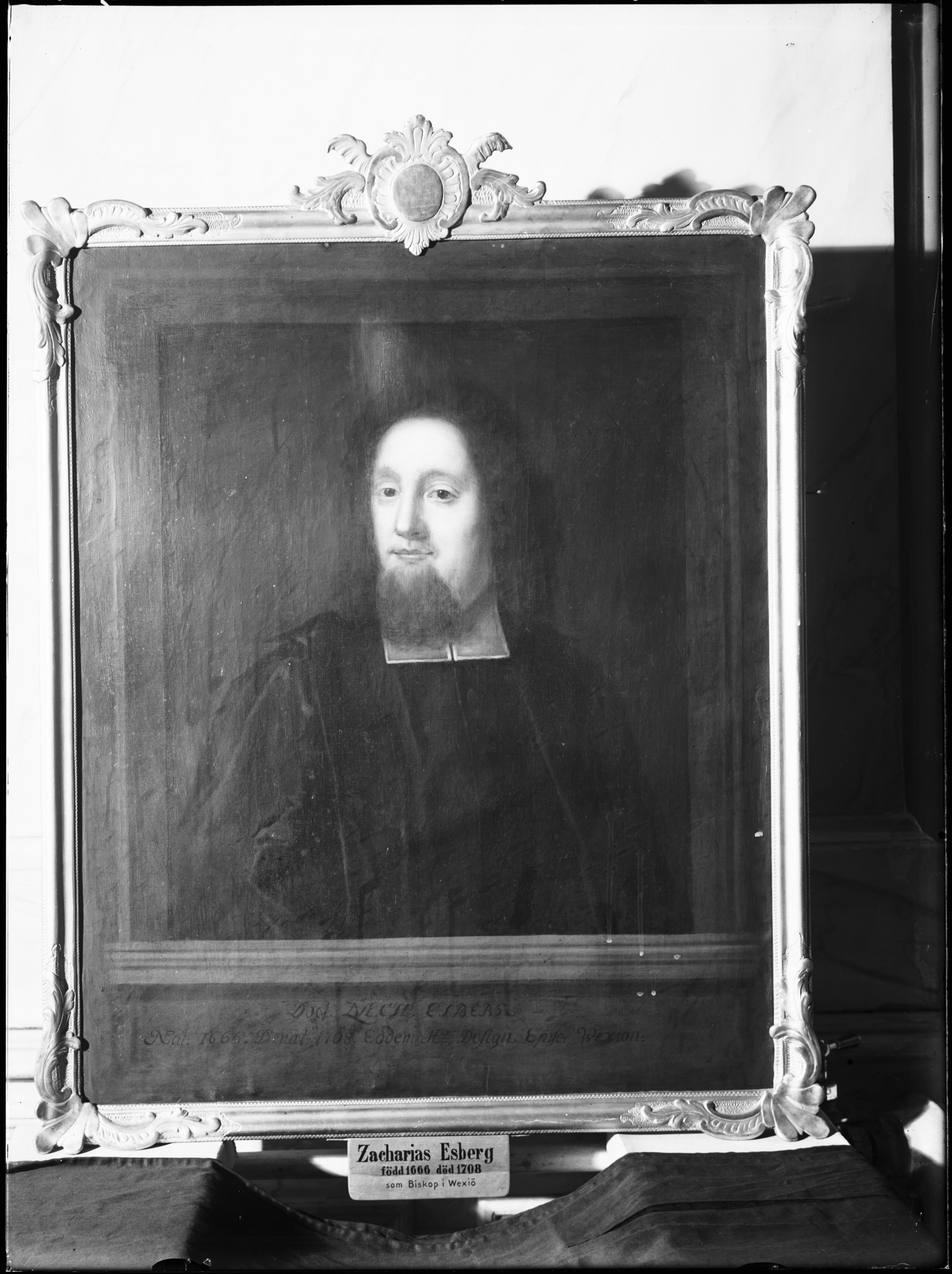 Porträtt i olja av kyrkoherde Zakarias Esberg. Okänd mästare.