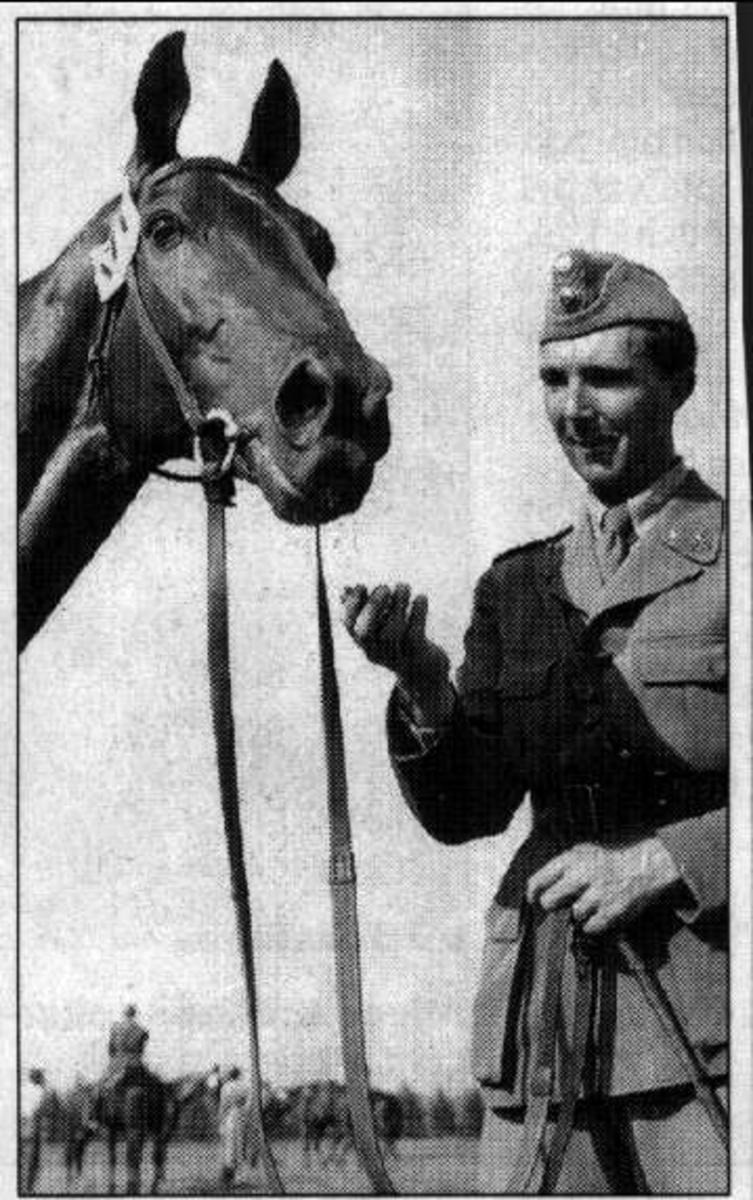 Hans von Blixen-Fineke, överstelöjtnant, chef för ridskolan i Strömsholm. En mycket framgångsrik ryttare i alla olika grenar inom ridsporten. Kortet taget 1953 efter seger i SM i fälttävlan. Kort och text (artikel i Svenska dagbladet i juli 1996) finns i pärm 20e, uppslag 6.