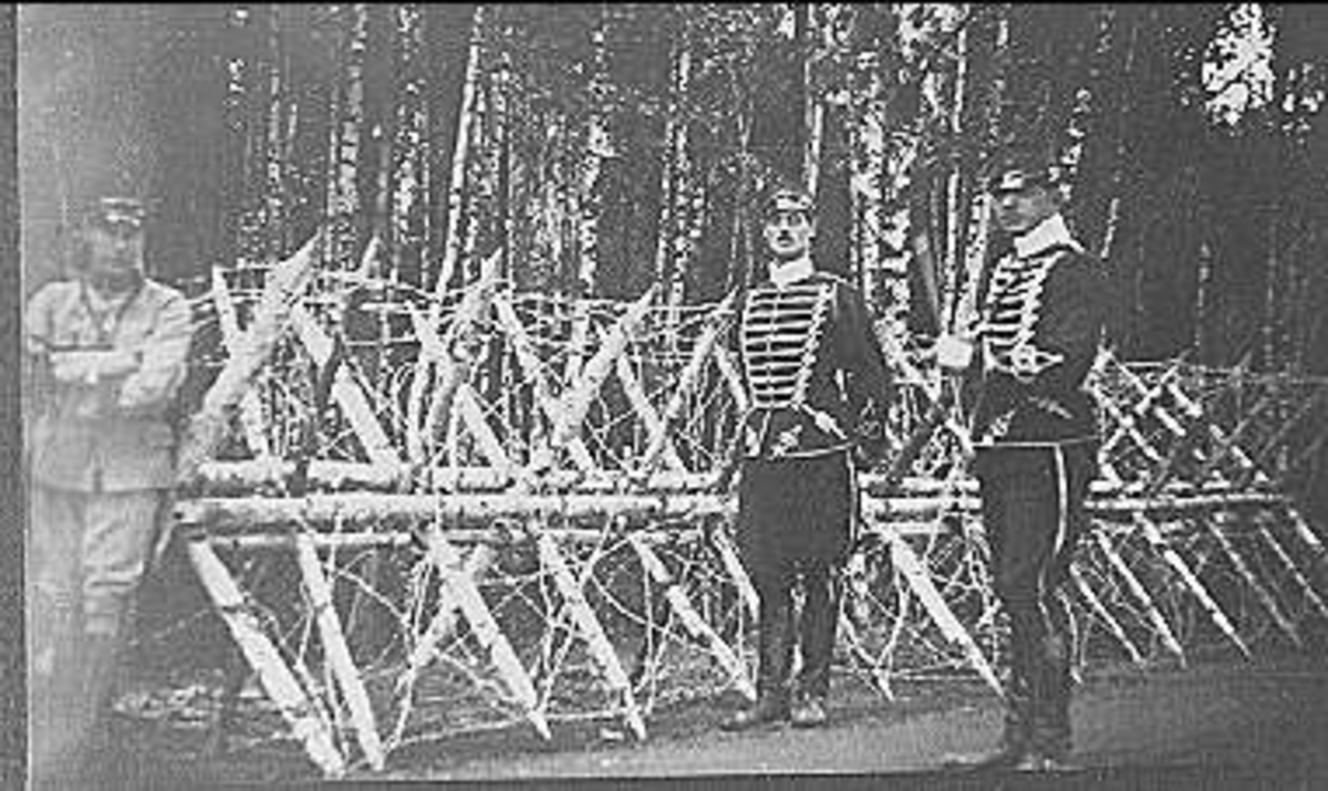 Befälsövningar i Karlsborg. Spanska ryttare - ett mycket effektivt hinder.