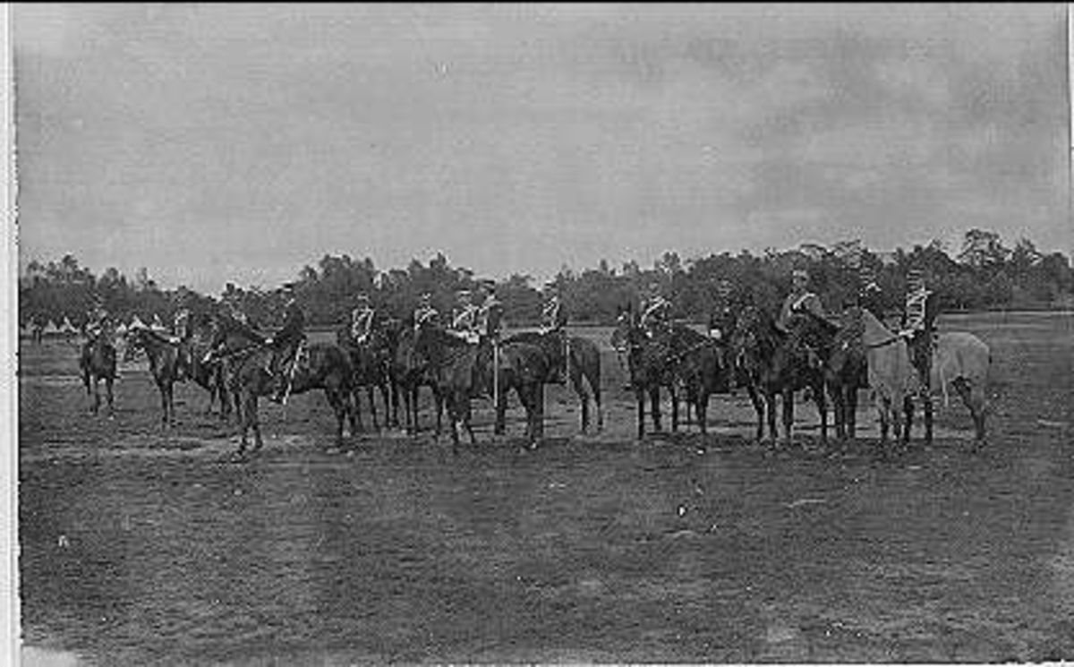 Livhusarsofficerare till häst på uppställningsplatsen öster om lägret, Sanna hed 1894.