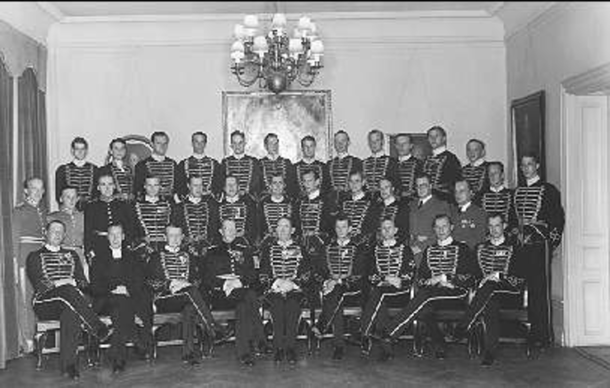 1933 - 1951. Officerskåren K3. Från vänster: Nedre raden: Ljungquist, Ekelöf, Schildt, Bergström (fältveterinär), Bergenstråhle, Littorin, Linton, von Essen, Kjellborg, 2 raden: Platerud, Wretlind, Rumstedt, Steeijfest, Lewenhaupt, Nelson, Blixen-Finecke, Sörensen, Hedenstierna, Anslund, Forsgren (Regementsläkare), Settergren(Veterinär), Ling-Vannerus, Brummen, 3 raden: Persson, Andrén, Selander, Fornell, Hamilton, Aaby-Ericsson, Alexandersson, Rizell, Ulfsparre, Malmström, Wallberg, Westman.