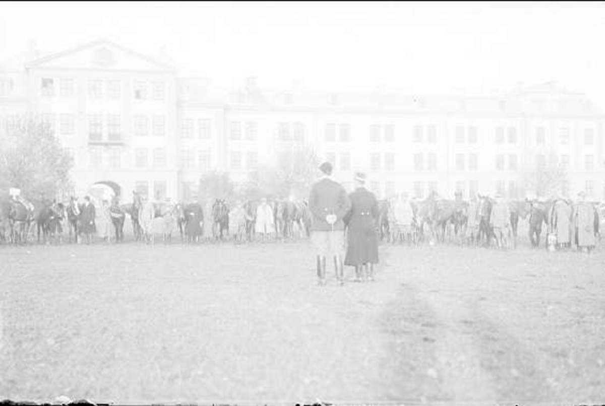 Deltagarna i jaktritten uppställda framför K 3 kasern.