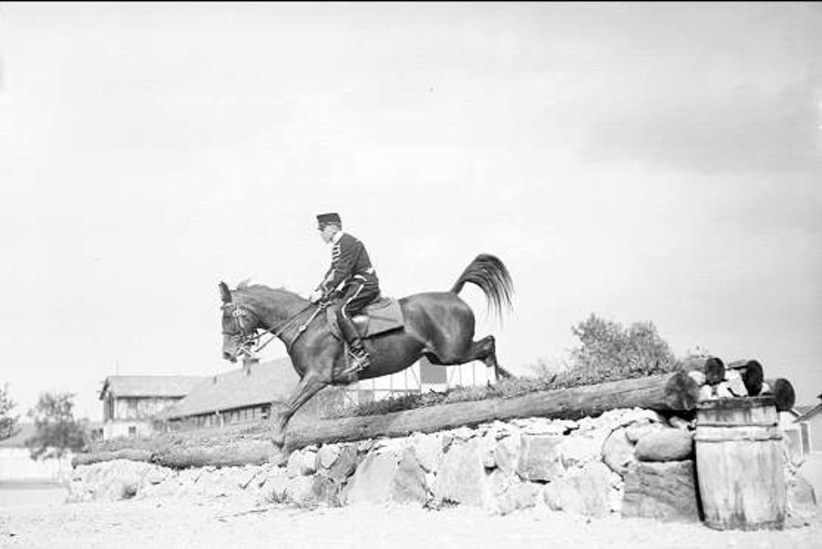 Ridutbildning i hinderhoppning över stenmuren på östra kaserngården.