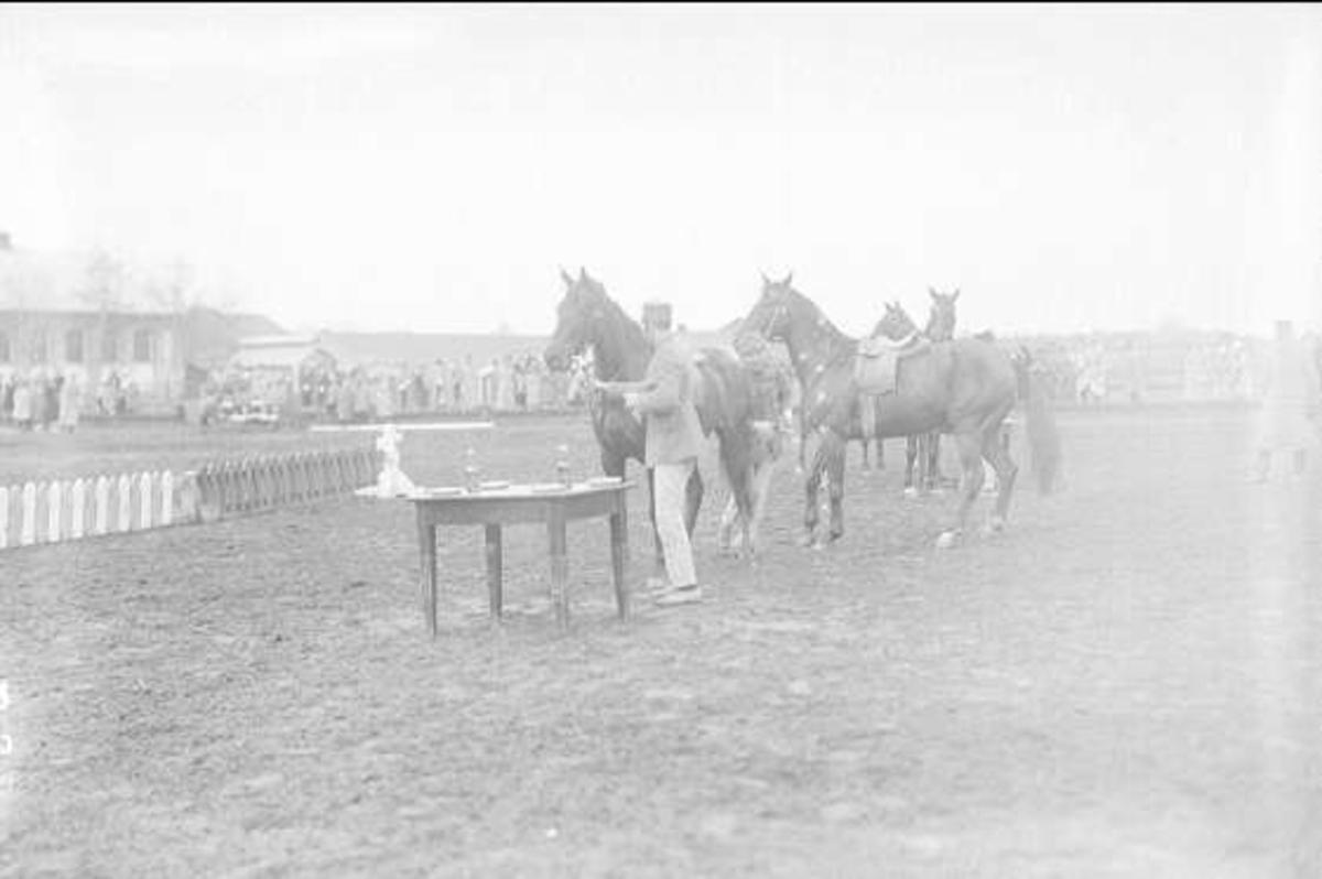 Aspirantskolans avslutning med bl.a. skämttävlingar. Här på fältet mellan K 3 kasern och "förvaltarbostaden". Dunkehallsåsen i bakgrunden.