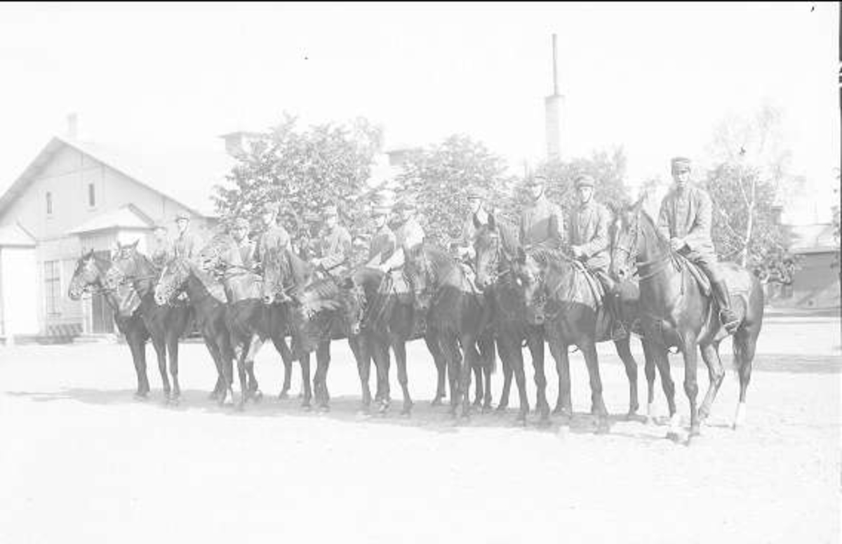 Avlämning före utbildning i ridning. I bakgrunden manskapsmatsalen.
