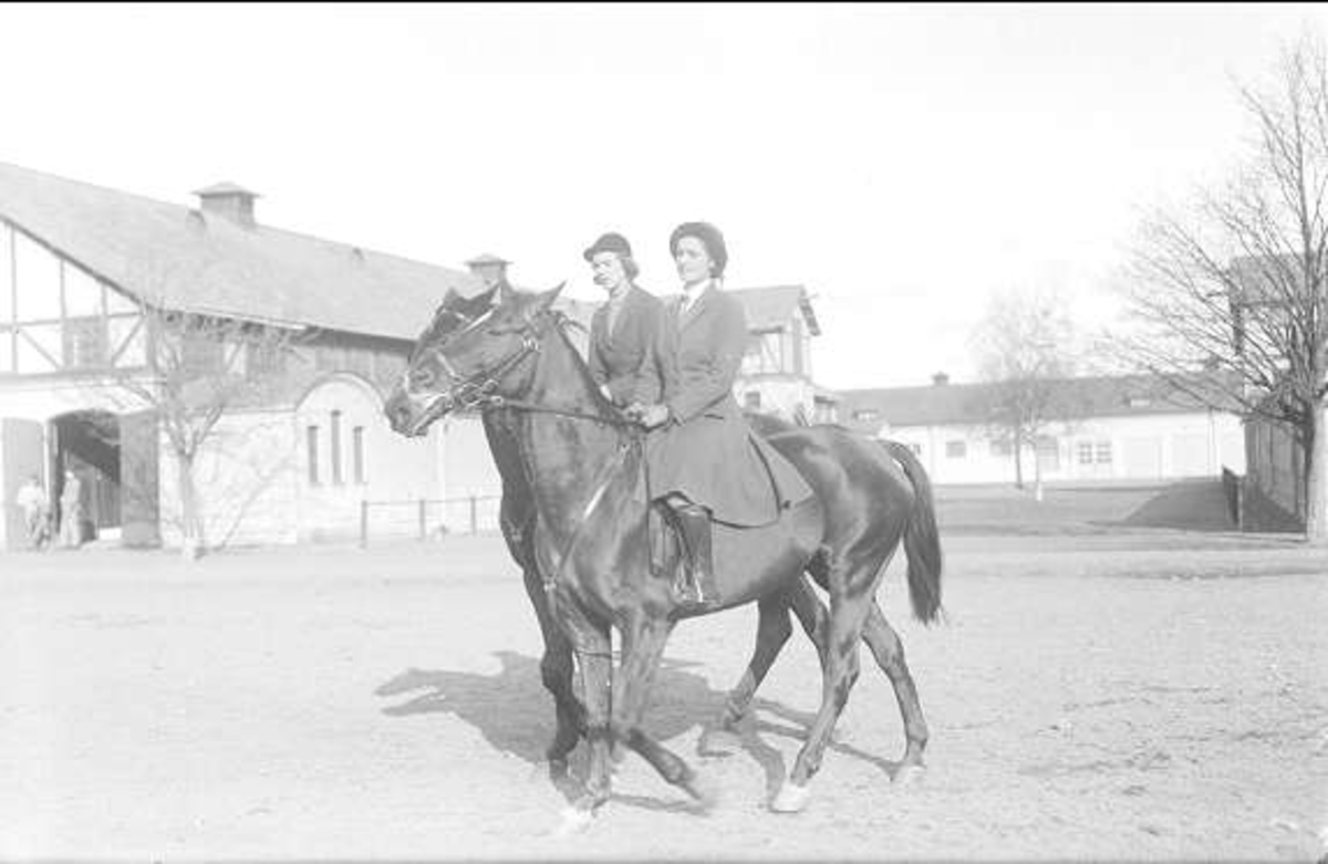 Titel: Fru Hedvig Odelberg, maka till ryttm Wilhelm Odelberg, rider ut på en ridtur tillsammans med en väninna.