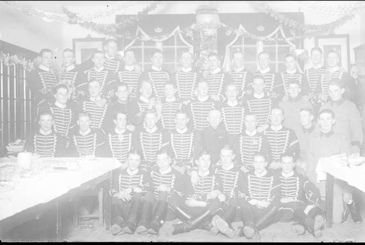 Beredskapstroppen firar jul i kasern. I mitten skvadronschefen ryttmästare Rolf Örn.